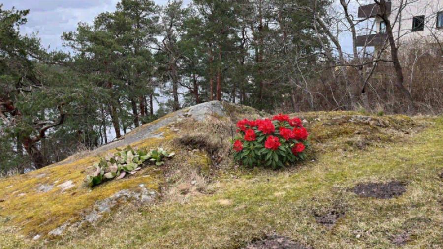 Om vädret blir enligt prognos planerar vi även att i morgon, onsdag kväll flytta den rhododendron som idag står bakom häcken vid sophuset. Förslaget är att ge den en ny plats vid uteplatsen, där den förhoppningsvis kan komma mer till sin rätt. Vi hoppas på ert medhåll i detta. Bilden i nyhetsbrevet är ett montage där tanken är att visa hur det är tänkt att se ut. Kom ihåg att den byggs ovanpå marken i torvblock.